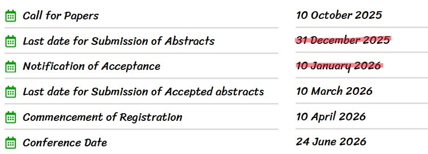 - Last date for the Submission of Abstracts extended to 22 January 2026